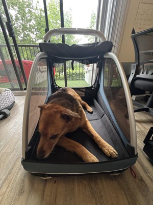 Great and smooth trailer. I have been using it mostly to get my dog to the park, which is a 15 minutes bike ride. My dog got used to it quickly and only tried to escape on the first ride. Would be great if Thule included a leash with the pet kit. Easy to convert between different modes and plan to use it for cargo and kids as well!
