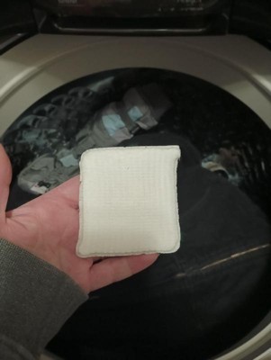 [This review was collected as part of a promotion.] This product is amazing! I love these squares and love to use them for my towels, sheets, and blankets. They work great on stains. We have 2 dogs and frequently have muddy paw prints or dirt on our blankets so I wash frequently. The concentration of detergent in these must be very good and they smell so fresh! Just a nice clean laundry scent. There is no residue left in my washer and I don’t worry about any gel or plastic having to dissolve. These are my new must have laundry item!
