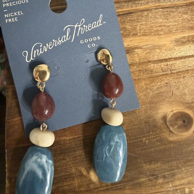 Whether going to a beach or picnic, these Tiered Drop Earrings from Universal Thread™ are a perfect choice for your casual outings. These drop earrings feature red, white and blue stones beautifully arranged in a tiered design for an eye-catching look. Boasting metal construction, these earrings are designed with post-back closures for a secure fit.