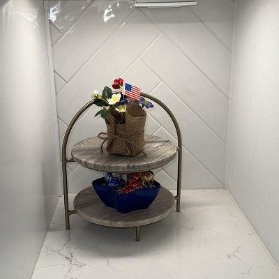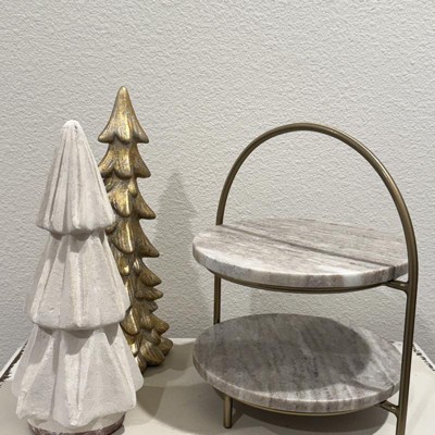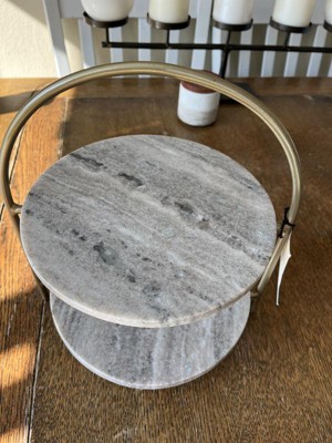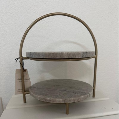 Tiered Marble and Brass Serving Stand Warm Beige - Hearth & Hand™ with Magnolia: Farmhouse Kitchen Two-Tier Tray