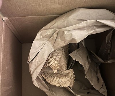 This survived the ride to my house, despite the lack of packing supplies used. I was surprised how heavy it was and that it wasn't cracked or chipped with only paper covering the inside bottom of the box. It isn't as pretty as the picture. It is grey and brown rather than primarily white like pictured online. It is also small- too small for what I had planned.