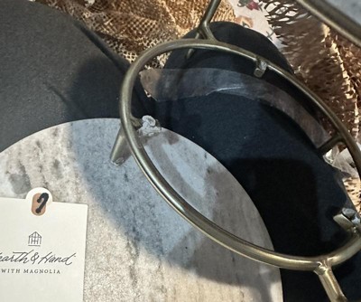 Create a gorgeous table setting for any occasion with the Tiered Marble and Brass Serving Stand from Hearth & Hand™ with Magnolia. This warm beige serving stand has two tiers to give you ample space for desserts, baked dishes and other items. Designed with a brass frame, this round serving stand comes with a marble base for a beautiful look.