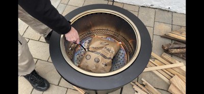 I have owned my Tiki Firepit for a few years now and totally enjoy the convience of the pellets fire bags. Drop in the bag, light the corners and WOOSH, sit back and enjoy the dancing flames, its smokeless, and its a good way to get other fuels light (wood). Only have 1 complaint, When it rains, the cover collapses in and holds water.