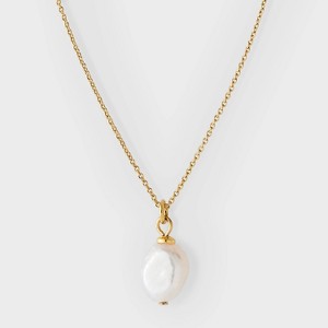 - 14k gold ion plating w/brass base and freshwater baroque pearl.
