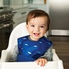 Tiny Twinkle's Silicone Pocket Bibs feature a rigid 3D spill pocket that stays wide open to catch spills. Made with food-grade silicone and OEKO-TEX certified recycled polyester, these bibs are waterproof, machine washable, and quick-drying. The no-scratch adjustable hook and loop closure grows with baby from 6-24 months. Rolls into a self-contained travel pod using the built-in pocket. BPA, BPS, PVC, and phthalate free.