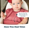 Food-grade silicone pocket stays wide open to catch spills, crumbs, and liquids during mealtime