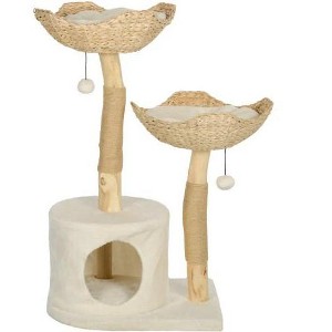 Solid Wood Elegance: Protect your furniture from your cat's natural scratching habits. Featuring solid wood cat scratching posts with jute and cat beds made of natural cattail, it provides a lasting scratching post and resting spot for your indoor cat.