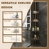 - Large 4-shelf shower storage solution for shampoos, body washes, and more