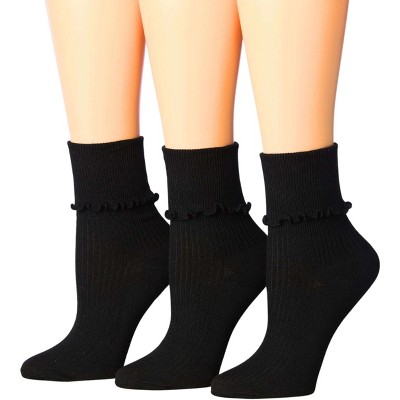 Tipi Toe Womens White/Grey/Black Turn-Cuff Solid Lettuce Edge Lightweight Quarter Length Ruffle Socks - 1 of 4