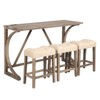 TiramisuBest 4 Piece Bar Table Set with Power Outlet USB Type C Port 3 Padded Stools Wooden Frame Rustic Faux Wood Grain