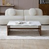 - Unique Nature-Integrated Design: This coffee table, featuring a unique flowing wave silhouette, seamlessly combines artistic sculptural elements with clean minimalist aesthetics, evoking the serene sensation of standing by the vast ocean, listening to the gentle murmur of the waves. The faux white marble table top paired with warm solid wood tones creates a perfect balance between contemporary elegance and natural warmth, complementing mid-century, Scandinavian and transitional interior styles.