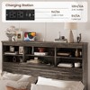 This 4-piece bedroom set includes a queen size bed frame, 2 nightstands, and a dresser. The headboard features multiple open shelves, offering convenient storage for books, d¨¦cor, or daily essentials. Each nightstand comes with 2 drawers for private storage, while the dresser provides 5 spacious drawers to keep your room organized and clutter-free. Plus, the headboard is equipped with a built-in charging station, including two outlets, a USB port, and a Type-C port¡ªmaking it easy to keep your devices powered at all times.