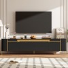 Presenting a sophisticated light luxury style, this TV stand embodies elegance and simplicity, aligning with modern home furnishing aesthetics while showcasing the owner's distinctive taste and style. Boasting five sturdy metal legs, it ensures robust load-bearing capacity, with golden decoration seamlessly blending design and artistry, and hidden handles enhancing its aesthetic appeal. Possessing ample storage with two large-capacity cabinets and four drawers, this TV cabinet discreetly organizes daily necessities, fostering a clutter-free and private living environment. Offering a spacious desktop, it comfortably accommodates decorations and essential items, catering to diverse daily needs. Serving dual roles as both functional furniture and stylish decoration that complements spatial style, selecting this TV stand is a rewarding choice. Facilitating effortless assembly, it comes with comprehensive, clear instructions, ensuring a seamless setup experience.