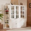 TiramisuBest 75.25'' Tall Freestanding Pantry Cabinet with Glass Door, Lattice Window & Storage,Farmhouse Hutch,White