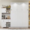 Maximize both elegance and function with this stylish Queen Size Murphy Bed, thoughtfully designed for modern living. Whether you¡¯re outfitting a small apartment or a multifunctional guest room, this bed offers a seamless blend of sleep and storage. The sleek built-in cabinet on the side includes multiple drawers, open shelving, and a wine rack complete with dedicated slots for wine glasses¡ªperfect for those who enjoy entertaining. Above the bed, two built-in lights provide cozy illumination for nighttime reading, while an integrated LED strip behind the wine storage area adds a sophisticated touch, offering three ambient color options to suit your mood. With a clean finish and streamlined silhouette, this Murphy bed brings space-saving innovation without compromising on style.