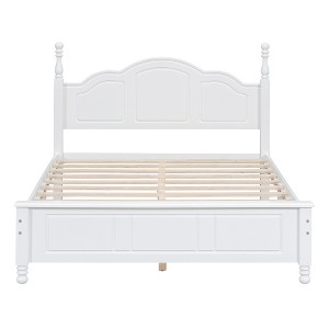 TIRAMISUBEST Queen Size Platform Bed Frame - Retro Wooden Bed with Slat Support, Solid White Finish, No Box Spring Needed