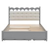 TiramisuBest Queen Upholstered Platform Bed with LED Frame, Twin XL Trundle & 2 Drawers, Pink Linen Fabric, Stylish & Functional