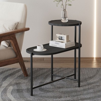 - Ample Storage Space: This black table boasts a two-tier design with a spacious tabletop and bottom shelf for your drinks, snacks, books, or decorative items. Its unique shape and design make it perfect for tiny homes, offices, and even as temporary movie night storage that can be later transformed into a nightstand.