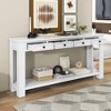 - Large Storage Space: Dimensions 63"L× 14"W× 30"H. The console table features with 4 drawers and a fixed lower shelf and long enough tabletop which provide enough storage space.