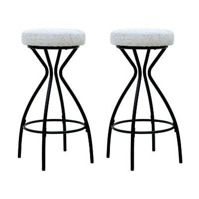 - Stylish Set of 2 Bar Stools: Elevate your kitchen or bar area with this modern set of 2 backless bar stools featuring a sleek black power-coated frame and a plush, round seat in white print for a touch of elegance.