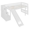 TiramisuBest Stairway Twin Size Loft Bed with Two Drawers and Slide, White