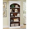 Made of thick particleboard with a waterproof melamine finish, The design with white & oak color blend allows the wooden library bookcase to effortlessly blend into any decorating style. The full contact ground base design is firm and stable. Each shelf can load 35 lbs. For further security, a wall anchor kit is provided to prevent tip-over incidents. Thoughtfully closed wood backboard can effectively protect your books get dirt and dust.