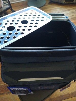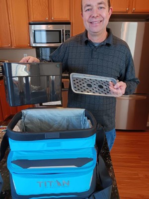 The Titan 10.5 qt Zipperless Hardbody Cooler is excellent. The cooler has two insulated compartments and mesh bags on the sides. The small, insulated compartment is only a couple inches wide and deep by about 9 inches long. The large compartment is huge. The large compartment has a plastic bucket inserted in the cavern. The bucket includes a removeable plastic shelf. I took the plastic bucket out to see if I could clean it. The bucket comes out, but it is really snug which is good. The large compartment’s lid is blended plastic and insulated material. When closed, the plastic lid fits in the top of the plastic bucket making a tight seal. @Target #ShareMy TargetStyle