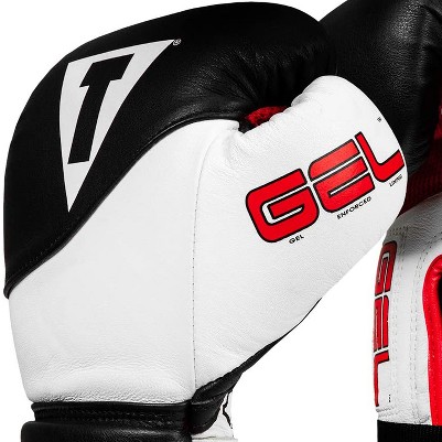 The Title Boxing Gel Suspense Training Gloves feature exclusive gel enforced lining and tri-layered foams to provide an incredible experience and better results. The nylon weave mesh palm insert with a moisture wicking hand compartment liner helps deliver cool, dry and comfortable workouts. A full seatbelt wrap-around nylon wrist strap has a hook and loop closure to ensure a snug, secure fit. Crafted from select hides of full grain leather for excellent durability. These training gloves provide any athlete with maximum comfort, security and protection.