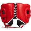 The Title Boxing Leather Sparring Headgear features premium, genuine leather for today's elite athletes. Its form-fitting, anatomical wraparound design is super comfortable and provides extended coverage during training and sparring. Its 3-layer, polyurethane, foam rubber and low density foam assemblage allows for maximum impact protection. The plush, suede-leather inside liner is super soft, moisture wicking, and helps it stay firm and snug during use. The fully adjustable lace-tie back and top of head features a genuine leather chin strap with steel buckle closure. The advanced international style cheek protectors offer excellent coverage without impairing sightlines and vision.