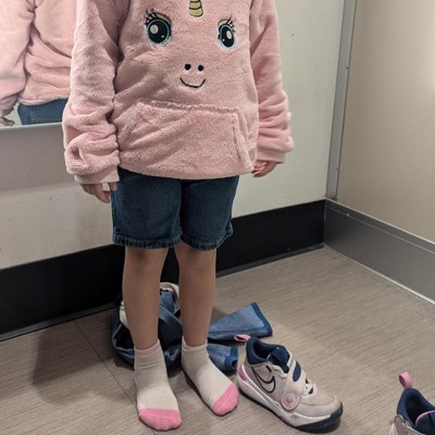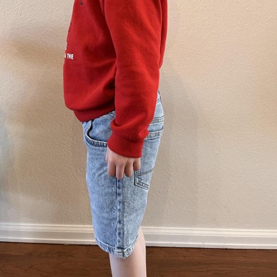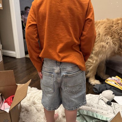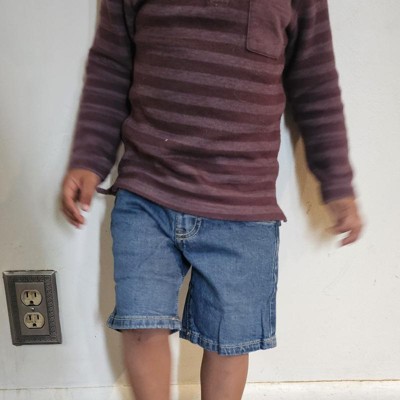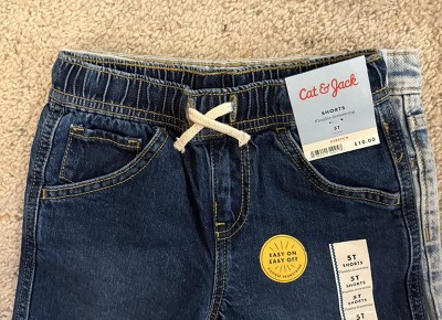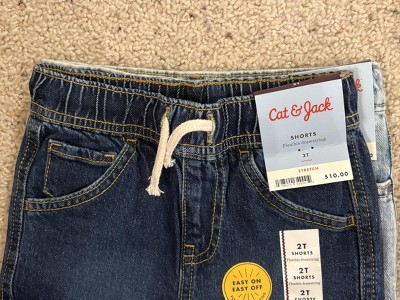 Enhance your little one's denim collection with these Denim Shorts from Cat & Jack™. The low-rise shorts are made from a midweight blend of cotton, recycled cotton and spandex for comfortable wear that moves and stretches with your kiddo. The adjustable waistband with belt loops and a snap button provides a secure, stay-put fit, and the classic five-pocket design completes the look with space for stashing small items.