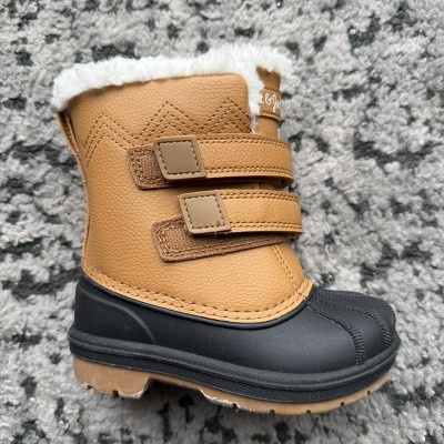 These boots are perfect for winter. I bought them for my toddler, and they’ve kept his feet warm and completely dry in snow and slush.The Velcro straps make it so easy to get them on and off. They feel sturdy and they are well made, and my toddler walks comfortably in them. The cognac color looks great in person and hides dirt well. Definitely a reliable winter boot and worth the purchase.