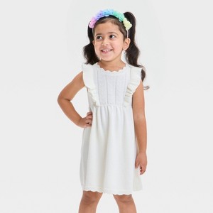 Toddler Girls' Sweater Ruffle Dress - Cat & Jack™ Cream 12M: Sleeveless, Pullover, At Knee