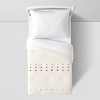 Bring a cozy look and feel to your toddler's room with this Pompom Comforter from Pillowfort™. Made from a soft fabric with filling for year-round comfort, this decorative comforter adds a layer of warmth to their bed, ensuring they stay cozy and comfy as they nap or drift off to dreamland. Designed in a solid hue, this cozy comforter features a tufted construction with stitched pompom accents forming horizontal stripes to add a touch of fun style to their bedroom decor. Coordinate it with printed sheets, shams, decorative pillows and stuffed animals to create a colorful, relaxing haven for your child.