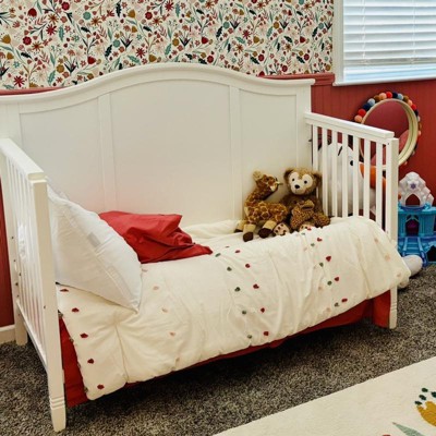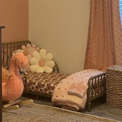 - Pompom comforter adds function and sweet charm to your toddler's bedroom decor