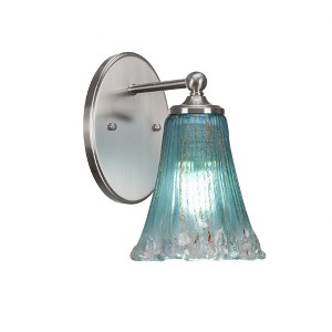 Toltec Lighting Capri 1 - Light Sconce in Brushed Nickel with 5.5" Fluted Teal Crystal Shade