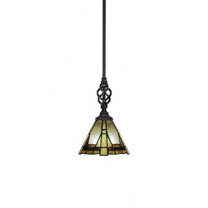 Toltec Lighting Elegante 1 - Light Pendant in Matte Black with 7" Zion Art Glass Shade