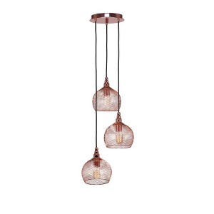 Collection: Plexus, Material: Steel, Finish Color: Copper, Width: 14.75", Height: 10.25", Lamping Type: Incandescent, Number Of Bulbs: 3, Wattage: 40 Watts, Cri: 80, Color Temperature: 2200 Kelvin, Dimmable: No, Moisture Rating: Dry Rated Desc: Plexus 3 Light Cluster Pendalier Shown In Brushed Nickel Finish With Smoke Antique Bulbs, Material: Steel, Finish Color: Copper, Width: 14.75", Height: 10.25", Lamping Type: Incandescent, Number Of Bulbs: 3, Wattage: 40 Watts, Cri: 80, Color Temperature: 2200 Kelvin, Dimmable: No, Moisture Rating: Dry Rated-Plexus - 3 Light Cluster Pendalier-10.25 Inches Tall and 14.75 Inches Wide-Copper Finish-2200 Color Temperature