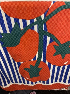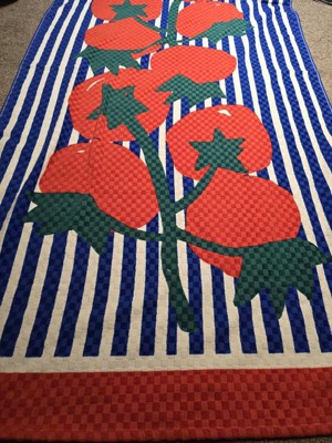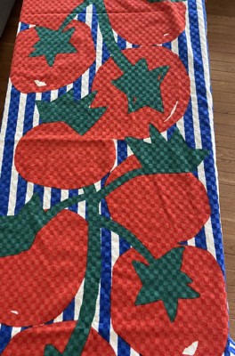 Good quality towel, I love the tomato pattern, it’s easy to wash without fading or tearing it’s great for the beach or for outdoor picnics it’s large enough for outdoor activities, and I would buy more towels like this