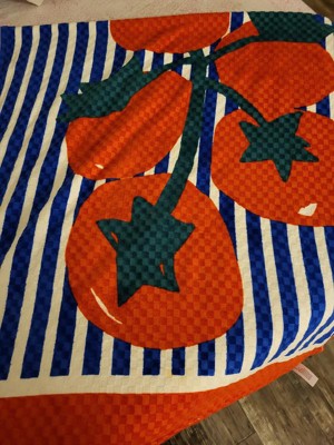 I absolutely love this tomato towel from Room Essentials. The towel is oversized which makes it great for laying out and beach day. The towel material is very comfortable. The design is bright and fun. Perfect!