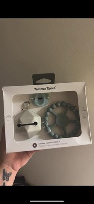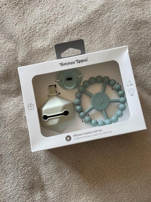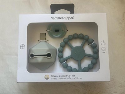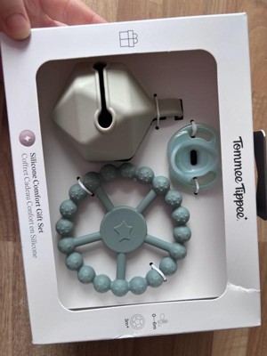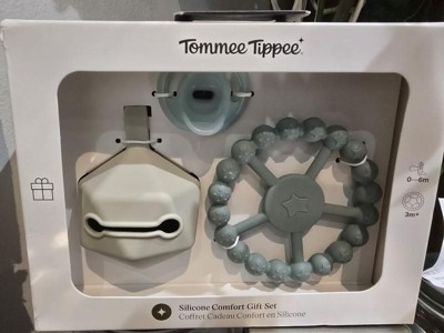 [This review was collected as part of a promotion.] This tommee tippee comfort giftset is very cute. It is made from silicone and is ultra lightweight. It includes a soother, carry case, and a teething ring that is suitable for babies from birth to six months old.