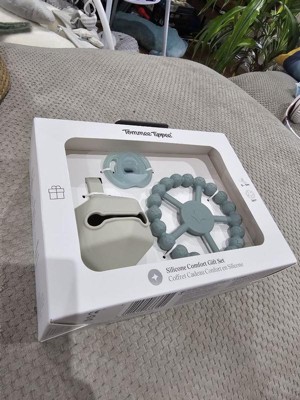 [This review was collected as part of a promotion.] Such a beautiful gift set. I love how it comes with a carry case for the teether as well as the dummy also. It makes it easier to carry around and find at the bottom of my mom bag.