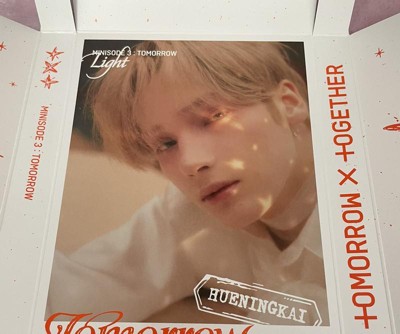 - Continuing with the minisode storyline, TOMORROW X TOGETHER (TXT) is back with a new mini album titled minisode 3: TOMORROW now in the Light Ver. Available in 5 versions specific to each member: SOOBIN, YEONJUN, BEOMGYU, TAEHYUN and HUENINGKAI. Contents of the album include: Package Box, Album Stand, CD, CD Envelope, Postcard set (23 postcards), Lyric Card Set, Mini Poster, Photocard (random 1 of 5) and Sticker. Dimensions: 175 x 130 x 22 mm.