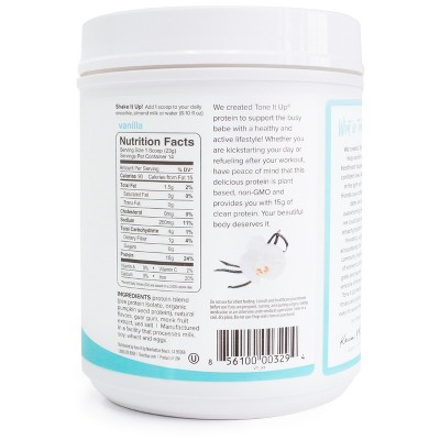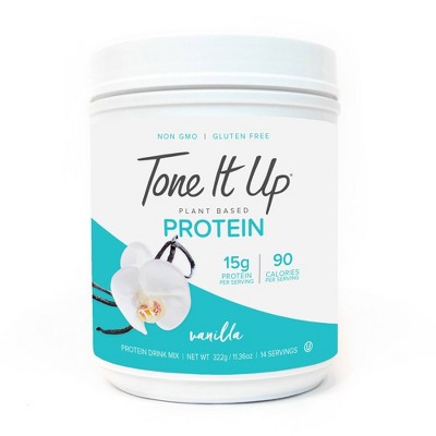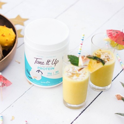 Tone It Up Vanilla Protein Powder is created by women, for women. Whether you are kickstarting your day or refueling after your workout, have peace of mind that this delicious protein is plant-based, non-GMO, gluten free, and provides 15g of protein and only 2g of sugar. Blend this protein in a smoothie, whip up your favorite protein muffins or pancakes, or simply mix it with water or almond milk.
