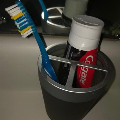 - Plastic toothbrush holder brings easy organization to your bathroom counter