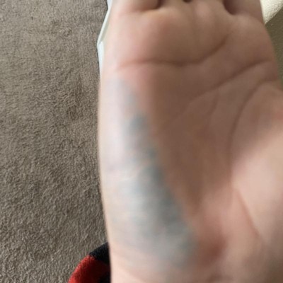 TURNED HAND BLUE FROM THE INK ON PAPER