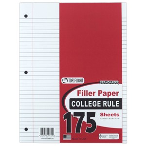 Top Flight 175 Sheet College Ruled Filler Paper White: Loose Leaf, 10.5 x 8 Inches, Stationery, Ruled Page
