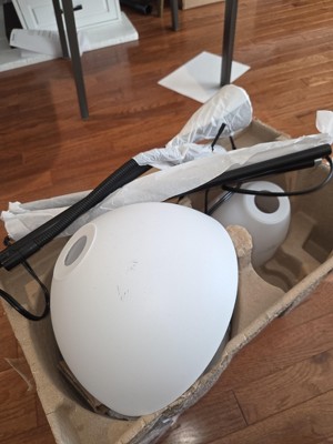 Arrived out of the box with a big black scratch on the outer part of the main lamp shade. Lamp base had weird grit and dirt in holes on bottom, like someone used the product before at an outdoor construction site.