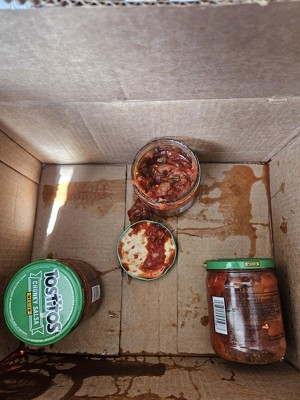I just recieved my 3 Tositos Chunky Salsa less then 15 mintues go (3/13/25) Open it and this is what I saw. Basically, the packing is horrible just plain place it in and nothing to make it stable or wrap on the bottle. I can't return or replace the system do not let me. All of my target orders its about 90% that got damage because of the poor packaging. Who is doing this? Why aren't anyone being train right???