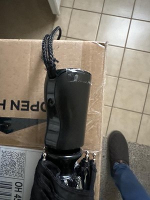 I received this umbrella free in exchange for my review. I love that this umbrella is compact. It is the perfect umbrella to keep in a work bag or diaper bag in case of rain. It is durable and reliable. It's plain black so it looks good always.
