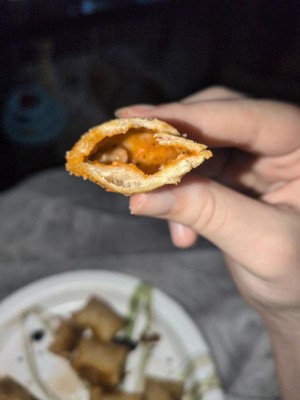 Barely any filling at all, mostly empty. Very disappointing and a insult to the pizza roll community